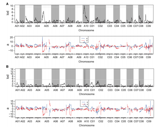 圖2 基于?IM和CIM的QTL定位結(jié)果