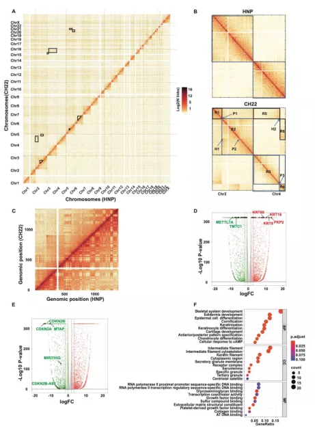 研究確定了1,617個HNP特異邊界和437個CH22特異邊界,同時確定了位于HNP和CH22特異邊界的588和62個DEG,包括CA3、RAB17和TRIB2(圖3D,E)。GO和KEGG分析表明這些DEG與細胞外基質(zhì)和細胞因子-細胞因子受體相互作用有關。