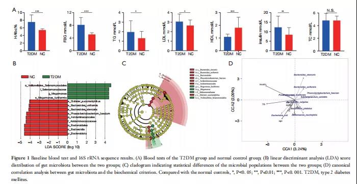 材料:腸道微生物:糞便標本取自正常對照組(n=30)和T2DM組(n=30)的受試者;