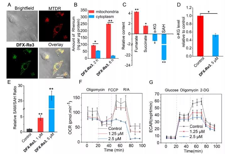 圖2. DFX-Re3影響線粒體代謝和關鍵表觀遺傳代謝物