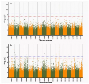 除差異表達研究之外,利用基因組水平遺傳變異研究,可以更加準確和全面地解析動植物群體的系統(tǒng)發(fā)生關(guān)系及其結(jié)構(gòu)、群體進化歷史、遺傳漸滲、馴化起源與人工選擇位點情況。而充分利用群體進化過程中數(shù)千世代積累的重組事件,可以進一步分析分子標記對表現(xiàn)型的遺傳效應。