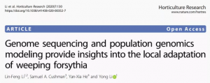 主要內(nèi)容:該研究以藥用作物連翹為研究對象,通過Nanopore平臺測序數(shù)據(jù)組裝了737.47 Mb的高質(zhì)量連翹基因組。并對15個連翹自然種群進行全基因組比較分析,找到了與本地適應相關(guān)的太陽輻射、溫度和降雨等變量相關(guān)候選基因。該研究為連翹從野生種群篩選優(yōu)良種質(zhì)資源提供了遺傳資源和理論參考。