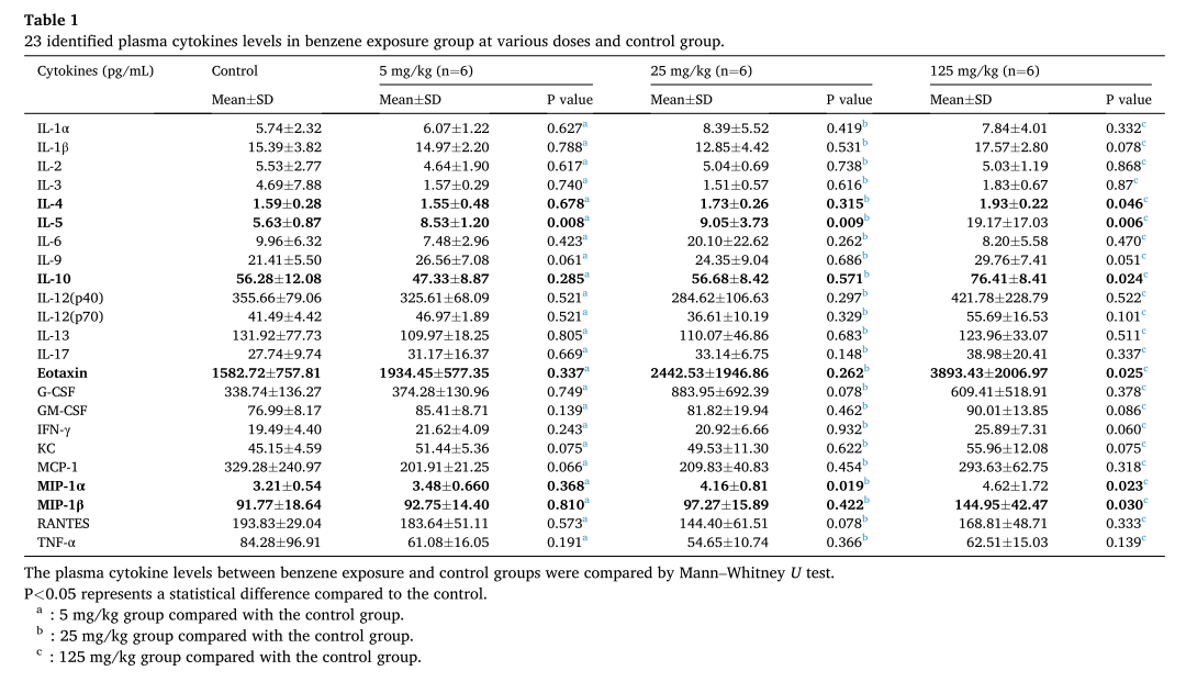 5. 苯暴露對血漿細(xì)胞因子的影響