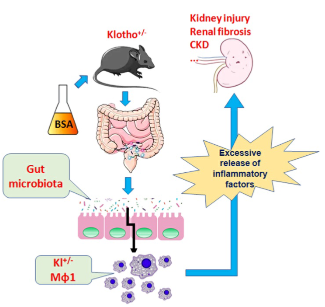 圖1.BSA通過(guò)腸道菌群-免疫軸加重klothod缺陷小鼠巨噬細(xì)胞M1激活和腎臟損傷。