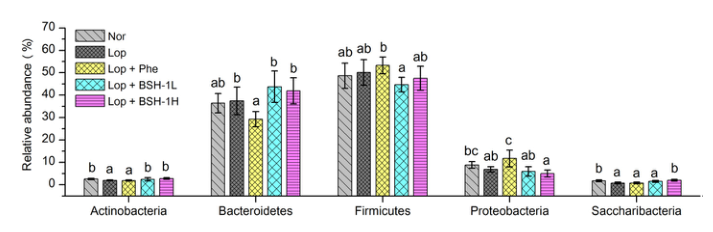 BSH-1是一種從竹屑中提取的O-乙酰化木聚糖。該研究測(cè)定了BSH-1對(duì)洛哌丁胺(Lop)誘導(dǎo)的小鼠便秘的保護(hù)作用。小鼠每日灌胃BSH-1,連續(xù)14天。在便秘小鼠中,BSH-1顯著縮短排便時(shí)間,提高胃腸(GI)通過(guò)率、糞便產(chǎn)量和盲腸短鏈脂肪酸(SCFAs)濃度。BSH-1調(diào)節(jié)血清胃腸激素和神經(jīng)遞質(zhì)水平。BSH-1還顯著改變了便秘小鼠的盲腸菌群,增加了潛在有益細(xì)菌(如 Lactobacillus, Roseburia和 Bacteroidales_S24–7)的豐度,減少了潛在致病菌(如Alloprevotella和Staphylococcus)。此外,結(jié)腸轉(zhuǎn)錄組分析表明,BSH-1顯著逆轉(zhuǎn)了便秘小鼠腸道運(yùn)動(dòng)、水和離子轉(zhuǎn)運(yùn)、炎癥和癌癥相關(guān)基因的表達(dá)變化。結(jié)果表明,BSH-1能有效緩解LOP誘導(dǎo)的小鼠便秘,有可能用于便秘的治療。