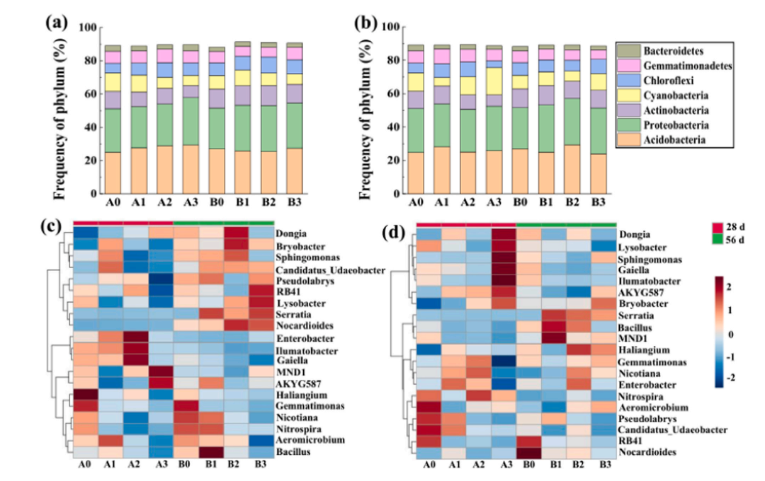 該論文通過(guò)16S rRNA基因測(cè)序、qPCR、酶活檢測(cè)以及IBR評(píng)估等方法,研究了兩種除草劑(氯酯磺草胺和雙氯磺草胺)不同濃度下所造成的土壤微生物、土壤中酶活力變化。結(jié)果表明,不同濃度的除草劑對(duì)土壤微生物群落組成造成了不同程度的影響,且兩種除草劑影響后的土壤微生物組成顯著不同。兩種除草劑對(duì)土壤內(nèi)氮循環(huán)及碳循環(huán)相關(guān)功能基因均產(chǎn)生影響,整體而言,雙氯磺草胺產(chǎn)生的效果更顯著。兩種除草劑對(duì)土壤中固氮相關(guān)酶活均有促進(jìn)作用,使用綜合生物標(biāo)志物響應(yīng)法(IBR)對(duì)他們的環(huán)境毒性進(jìn)行了比較與評(píng)估,發(fā)現(xiàn)雙氯磺草胺的環(huán)境毒性高于氯酯磺草胺。