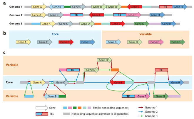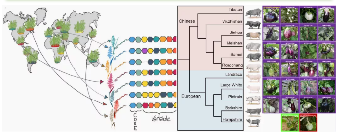 因此對于一個(gè)物種來說,如果只使用單一的參考基因組進(jìn)行遺傳馴化變異的研究,可能會丟失掉大量有意義的基因信息。為了解決這些問題并充分理解關(guān)鍵物種中重要性狀形成機(jī)理,為育種奠定重要的研究基礎(chǔ),動植物泛基因組研究應(yīng)運(yùn)而生。
