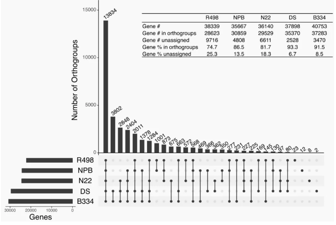 核心基因(core gene):在所有動植物品系或者菌株中都存在的基因;非核心基因(dispensable gene):在1個(gè)以及1個(gè)以上的動植物品系或者菌株中存在的基因。特有基因(Private):僅在一個(gè)品系中存在的基因。