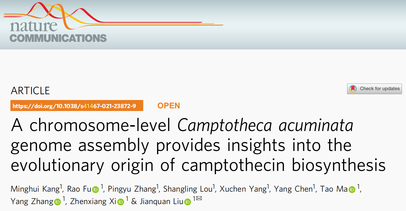 本研究通過(guò)PacBio和HiC技術(shù)組裝注釋了高質(zhì)量染色體級(jí)別的喜樹基因組,最終組裝大小414.95 Mb,contigN50=1.47 Mb。比較基因組等研究發(fā)現(xiàn),喜樹堿經(jīng)歷了一個(gè)獨(dú)立的全基因組復(fù)制,從中衍生出的許多基因與喜樹堿的生物合成有關(guān)。LAMT基因的功能分化和兩個(gè)SLAS基因的正向進(jìn)化都對(duì)喜樹堿在喜樹中的生物合成有很大貢獻(xiàn)。該研究揭示了喜樹中喜樹堿生物合成通路可能的分子進(jìn)化機(jī)制,發(fā)現(xiàn)高質(zhì)量基因組組裝在識(shí)別新次級(jí)代謝物進(jìn)化起源中的遺傳變化具有十分關(guān)鍵的作用。