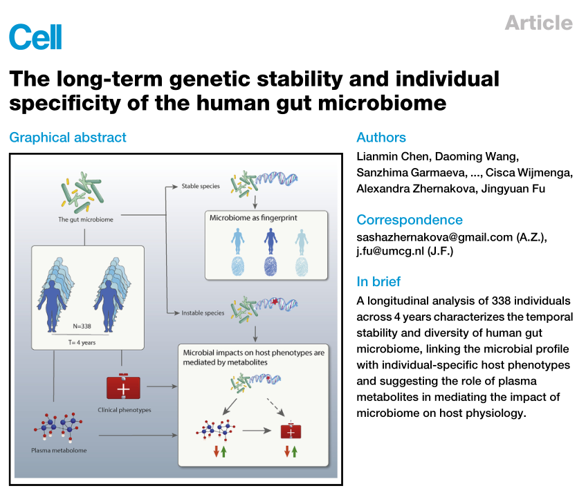 4月|Cell:人腸道微生物群的長(zhǎng)期遺傳穩(wěn)定性和個(gè)體特異性