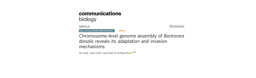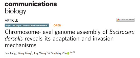 橘小實(shí)蠅(Bactrocera dorsalis)是世界重大入侵害蟲,可危害250余種果蔬,被列入我國(guó)首批重點(diǎn)管理外來入侵物種名錄。橘小實(shí)蠅宿主廣且定殖傳播力強(qiáng),與其他實(shí)蠅類害蟲競(jìng)爭(zhēng)易成為優(yōu)勢(shì)種,一旦傳入非疫區(qū)將造成巨大經(jīng)濟(jì)損失,嚴(yán)重威脅生物安全。目前橘小實(shí)蠅已在全球六大洲至少65個(gè)國(guó)家造成危害,而其基因組信息的缺乏使得相關(guān)防控研究難以進(jìn)一步開展。