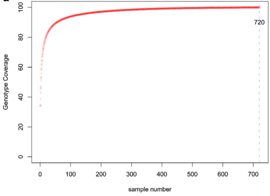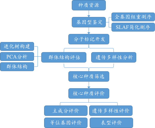 核心種質(zhì)可以最大限度地去除原始種質(zhì)資源中的重復(fù),以最少的種質(zhì)材料代表原始種質(zhì)資源的全部或大多數(shù)遺傳多樣性和地理來源,為當(dāng)前越來越多的種質(zhì)資源收集、評(píng)價(jià)和利用帶來了便利,特別是隨著基因組學(xué)的發(fā)展,測(cè)序成本的極速下降,使得大規(guī)模群體測(cè)序得以實(shí)現(xiàn)。利用高分辨率的分子標(biāo)記,提升遺傳材料間遺傳相似度和雜合度的鑒別能力,從而選擇能夠代表整個(gè)種質(zhì)資源基因多樣性的大小合理的核心種質(zhì)材料,更加有助于種質(zhì)資源的保存、管理、使用。使得我們可以有重點(diǎn)地進(jìn)行優(yōu)異種質(zhì)的研究,結(jié)合GWAS分析、遺傳進(jìn)化分析、QTL定位、特有標(biāo)記開發(fā)等方法進(jìn)一步進(jìn)行基因的挖掘與克隆,提高種質(zhì)資源的利用效率。