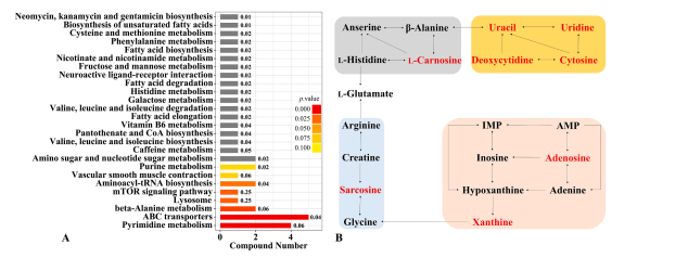 本研究旨在揭示中鏈甘油單酯?(MG)?補(bǔ)充劑引起的雞肉鮮肉質(zhì)量、成分和味道的差異。結(jié)果表明,添加?MG?可改善雞湯和肉味。上調(diào)升-carnosine,肌氨酸,尿苷和促成了鮮味和肉味的MG組的雞湯煙酰胺。膳食MG增加了雞胸肉肌肉中的總超氧化物歧化酶活性和氨基酸含量,并降低了丙二醛含量和滴水損失。此外,肉類代謝組顯示肌酸、甜菜堿、l-鵝肌氨酸、肌苷?5′-單磷酸、次黃嘌呤、肌苷和磷脂,以及氨基酸和嘌呤代謝途徑,與通過添加?MG?改善肉雞的肉質(zhì)、成分和味道有關(guān)。總之,這些發(fā)現(xiàn)提供了證據(jù),證明添加?MG?可以改善肉雞的鮮肉質(zhì)量、成分和味道。