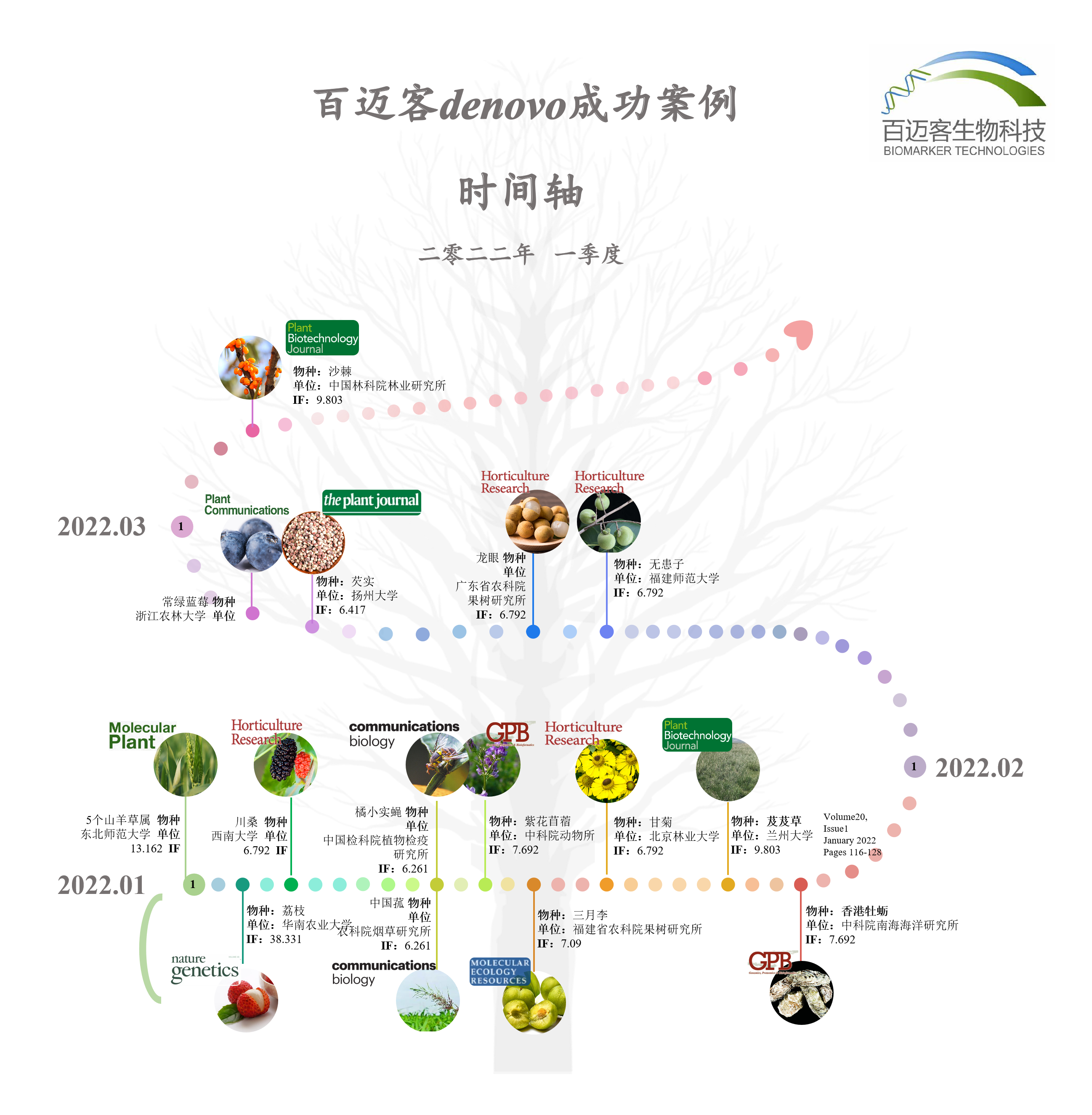 百邁客基因組研究合作項(xiàng)目陸續(xù)見刊,一季度成功助力15余篇研究成果Online于國際知名期刊,這些項(xiàng)目中,百邁客有幸作為共同作者or參與其中基因組測序or基因組組裝分析等相關(guān)工作。文章既是實(shí)力的認(rèn)可,也是服務(wù)的肯定!接下來,讓我們一起隨著時(shí)間線看看這些高質(zhì)量的文章都挖掘了怎樣精彩的故事~