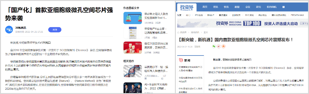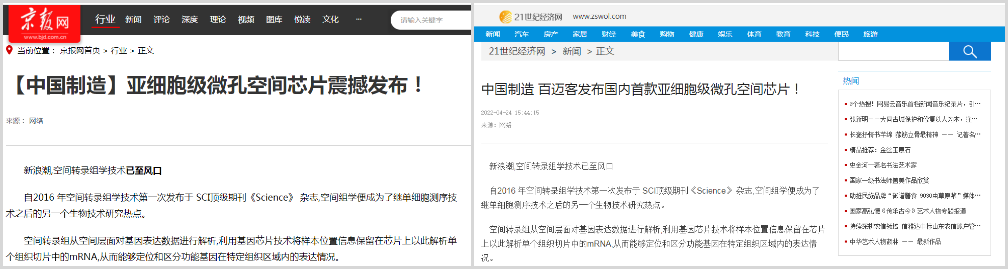 百邁客生物此次發(fā)布的空間芯片百創(chuàng)S1000,突破國外技術(shù)壟斷開啟了國產(chǎn)化制造時代,未來百邁客將帶著百創(chuàng)系列產(chǎn)品,結(jié)合多組學(xué)技術(shù),與廣大科研工作者攜手共進(jìn),為國家科研事業(yè)創(chuàng)造新的繁榮。