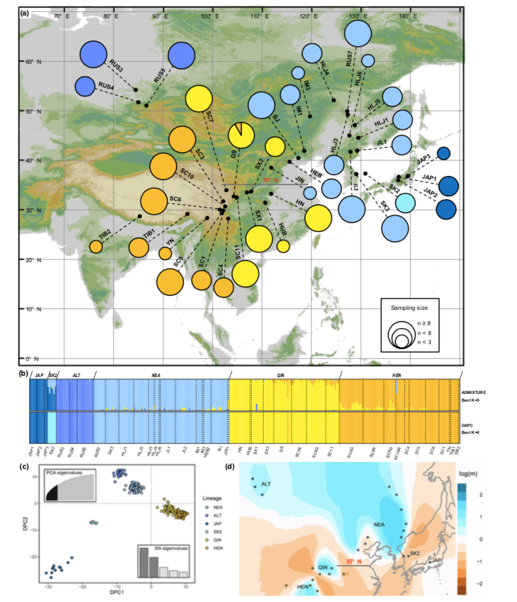 在今年3月份發(fā)表在Molecular Ecology(IF = 6.185)上的題為“Ecological adaptation shaped the genetic structure of homoploid ferns against strong dispersal capacity”的研究中,中國(guó)科學(xué)院植物植物研究所張憲春研究組利用SLAF-seq對(duì)中華蹄蓋蕨復(fù)合群Athyrium sinense complex進(jìn)行簡(jiǎn)化基因組測(cè)序,獲取全基因組范圍內(nèi)有代表性的SNP變異位點(diǎn),對(duì)其群體遺傳結(jié)構(gòu)進(jìn)行分析,揭示了蕨類植物孢子強(qiáng)擴(kuò)散能力下生態(tài)適應(yīng)塑造的遺傳分化格局。