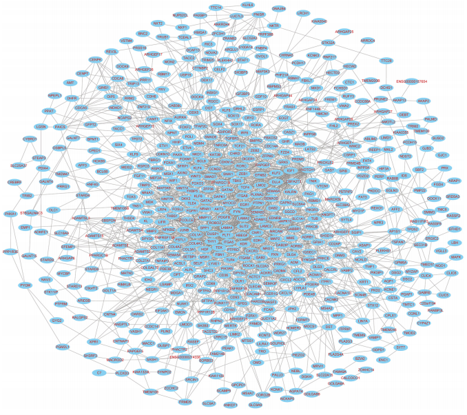 (圖6)關(guān)鍵mRNA的網(wǎng)絡(luò)