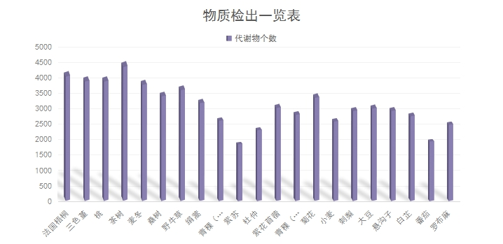 小編統(tǒng)計(jì)了2022年近兩個(gè)月的植物樣本的非靶物質(zhì)檢出情況,植物樣本中二級(jí)鑒定到的物質(zhì)數(shù)量最高4700,平均檢出3199個(gè)物質(zhì),隨后隨機(jī)抽取了20個(gè)項(xiàng)目,涉及不同物種,針對(duì)植物樣本中二級(jí)鑒定到的物質(zhì)數(shù)目,繪制成了以下: