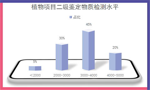 小編對(duì)部分植物項(xiàng)目的檢出情況進(jìn)行了歸納,得到了各個(gè)檢出水平的項(xiàng)目占比,具體如下圖: