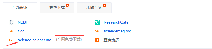 打開http://xueshu.baidu.com/,輸入文獻(xiàn)題目,回車,則出現(xiàn)文獻(xiàn)的詳細(xì)信息頁面,下拉會(huì)看到全部來源,點(diǎn)擊后面帶“全網(wǎng)免費(fèi)下載”字樣的,跳轉(zhuǎn)至PDF下載界面,輕松獲得文獻(xiàn)。但是,多數(shù)情況下百度學(xué)術(shù)里面沒有免費(fèi)的PDF下載資源,這時(shí)仍推薦sic-hub。