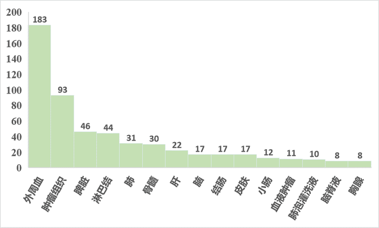 與圖2展示的類似,百邁客實(shí)測(cè)項(xiàng)目中血液樣本數(shù)量很多,占比超60%;血液樣本相較于組織樣本,無(wú)需進(jìn)行細(xì)胞解離,能夠避免細(xì)胞解離引起的細(xì)胞活性受損、細(xì)胞類型丟失等問(wèn)題;尤其是臨床樣本,往往涉及到組織樣本獲取難度大的問(wèn)題,患者治療后腫瘤組織取樣更是很多老師的困擾,因此取配對(duì)的血液樣本就成了一個(gè)合適的替代方案,在臨床監(jiān)測(cè)、標(biāo)志物診斷方面更是具有巨大的優(yōu)勢(shì)。