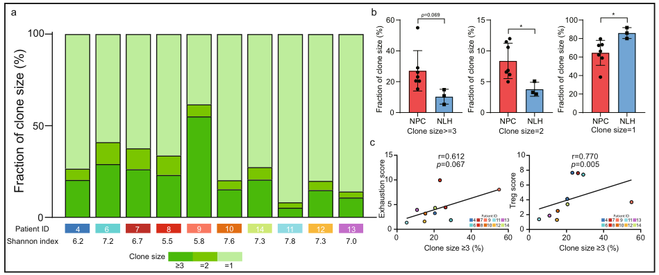 研究?jī)?nèi)容:鼻咽癌的病理學(xué)特征表現(xiàn)為腫瘤內(nèi)部和附近經(jīng)常被成分復(fù)雜的免疫細(xì)胞所浸潤(rùn),這種微環(huán)境特征在理論上表明了免疫治療在鼻咽癌中具有極高的潛力。然而在I期和II期臨床試驗(yàn)中,鼻咽癌患者對(duì)免疫療法的反應(yīng)率僅有 20%-30%,表明鼻咽癌微環(huán)境中細(xì)胞異質(zhì)性和動(dòng)態(tài)功能需要進(jìn)一步精準(zhǔn)解析,從而優(yōu)化針對(duì)鼻咽癌的精準(zhǔn)治療。本研究利用單細(xì)胞免疫組庫(kù)技術(shù)系統(tǒng)地對(duì)比了鼻咽癌腫瘤微環(huán)境和非惡性鼻咽微環(huán)境的構(gòu)成和功能狀態(tài),發(fā)現(xiàn)初始B細(xì)胞、記憶性B細(xì)胞和效應(yīng)B細(xì)胞和鼻咽癌患者的預(yù)后呈顯著正相關(guān),雙陰性B細(xì)胞則和鼻咽癌患者的預(yù)后呈顯著負(fù)相關(guān),成為預(yù)測(cè)鼻咽癌患者預(yù)后的潛在生物標(biāo)記物;耗竭T細(xì)胞高度表達(dá) CXCL13,可能是招募 CXCR5+?B細(xì)胞并促進(jìn)三級(jí)淋巴結(jié)構(gòu)形成的重要分子機(jī)制,可能是影響B(tài)細(xì)胞在鼻咽癌腫瘤微環(huán)境中浸潤(rùn)程度的因素之一;該研究發(fā)現(xiàn)了與鼻咽癌患者預(yù)后相關(guān)的特征基因和細(xì)胞亞群,從而為研究鼻咽癌微環(huán)境中的分子機(jī)制和優(yōu)化鼻咽癌精準(zhǔn)治療提供了分子生物學(xué)上的依據(jù)。