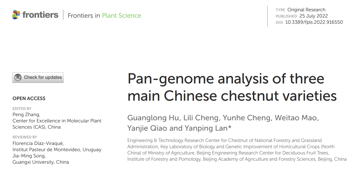 近日,北京市農(nóng)林科學(xué)院林業(yè)果樹(shù)研究所蘭彥平團(tuán)隊(duì)在《Frontiers In Plant Science》在線發(fā)表了題為“Pan-genome analysis of three main Chinese chestnut varieties”的研究論文。百邁客有幸為該研究提供板栗基因組測(cè)序組裝工作。