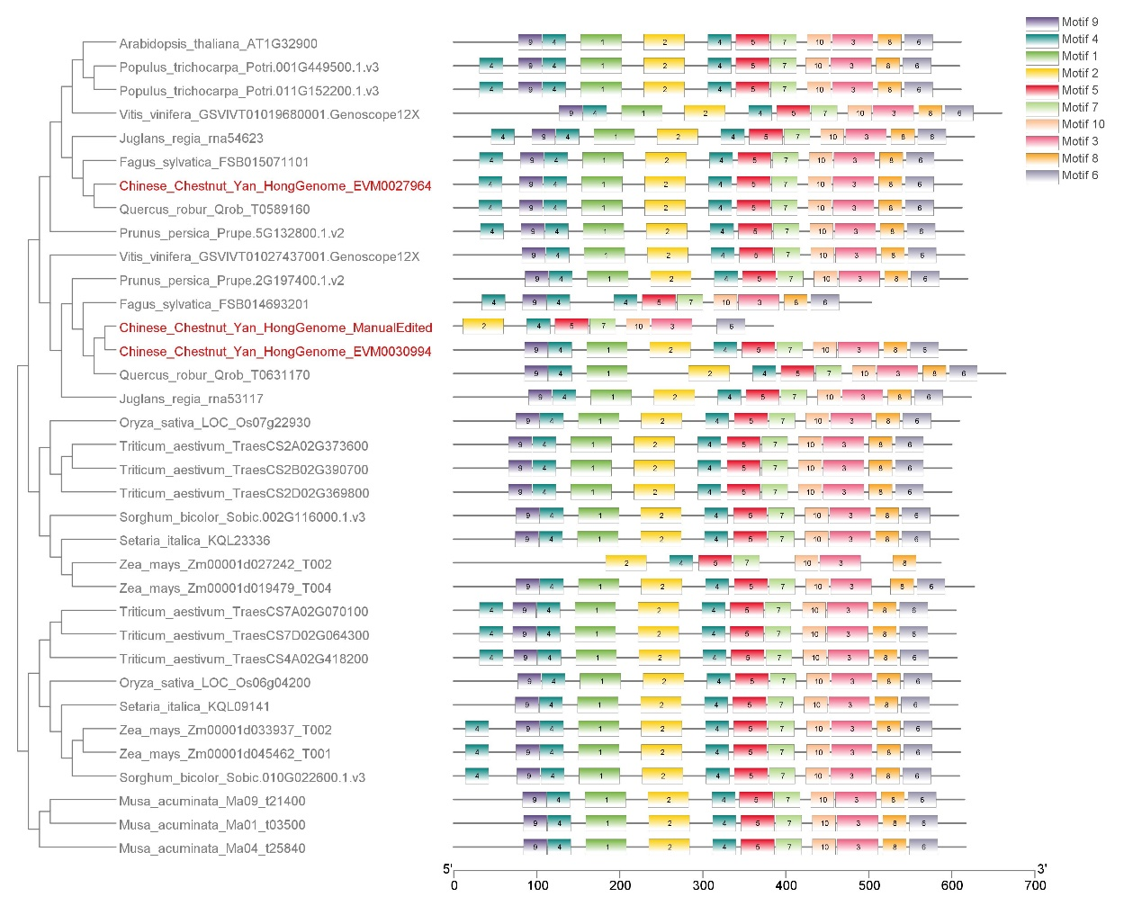 糯性是板栗最重要的食用品質(zhì)之一。然而,關(guān)于板栗中糯性基因報(bào)道卻很少。通過(guò)與近緣種比對(duì),發(fā)現(xiàn)板栗中與糯性相關(guān)的基因家族GBSS II存在擴(kuò)張。為了進(jìn)一步探索該家族進(jìn)化趨勢(shì),本研究針對(duì)所有GBSS蛋白和相關(guān)家族成員進(jìn)行了系統(tǒng)的發(fā)育分析。研究表明板栗中的GBSS II-b分支比近源物種多個(gè)成員。
