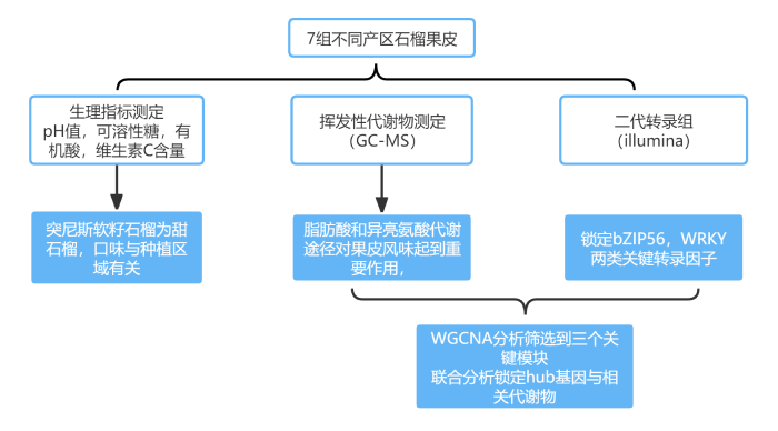 多組學(xué)研究在植物領(lǐng)域中的應(yīng)用案例2、多組學(xué)聯(lián)合解析突尼斯軟籽石榴揮發(fā)性風(fēng)味物質(zhì)生物合成機(jī)制