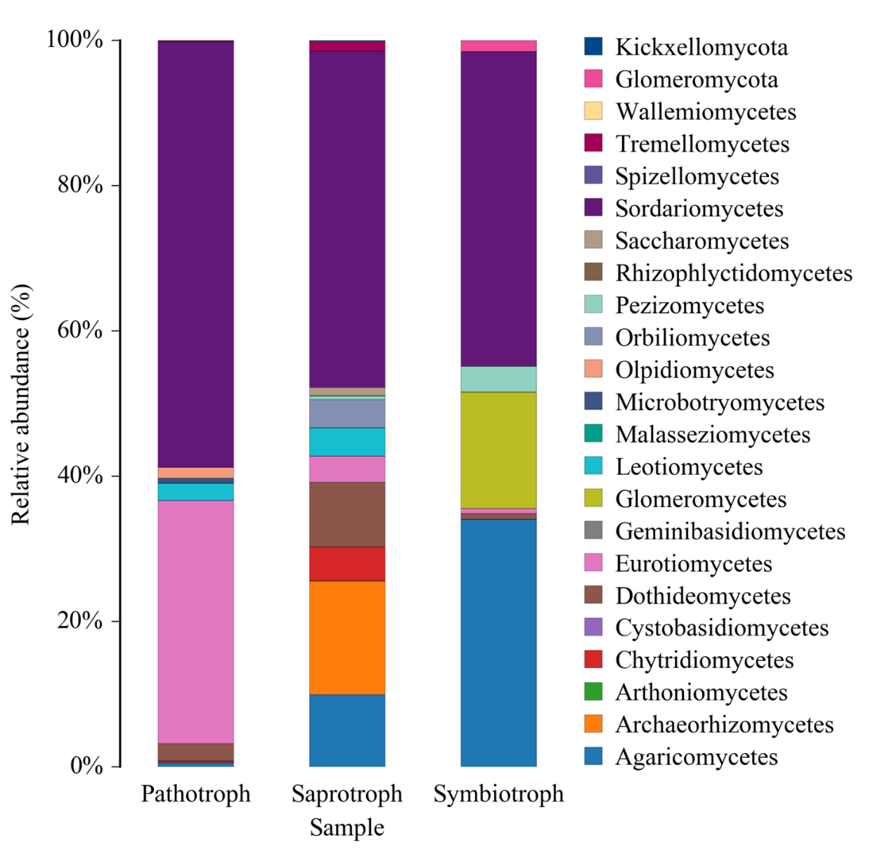 FUNGuild 基于目前已發(fā)表的文獻或權(quán)威網(wǎng)站數(shù)據(jù),首先根據(jù)營養(yǎng)方式(trophicMode分類系統(tǒng))將真菌分為三大類: