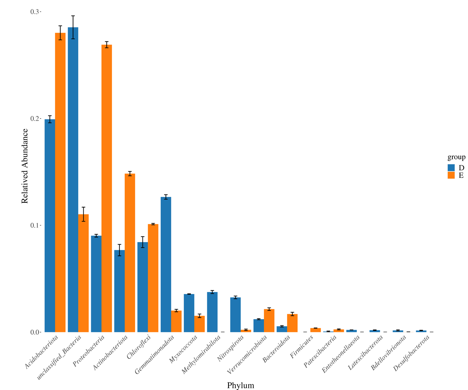 Metastats分析:用于尋找組間差異物種,從算法原理上來說,Metastats實際上是非參數(shù)多重檢驗和p值校正的整合,由于Metastats采用的非參數(shù)t檢驗,因此只能分析兩個分組間差異。對組間的物種豐度數(shù)據(jù)進行 T 檢驗得到 p 值,并對 p 值進行校正得到 q 值;最后根據(jù) p 值(或 q 值)篩選出導(dǎo)致兩組樣品組成差異的物種,進而進行可視化繪圖,得到相應(yīng)的物種差異柱狀圖,或者箱線圖展示。