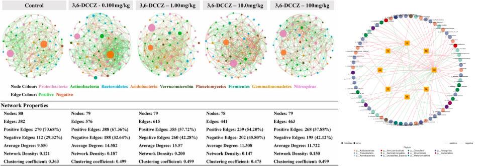 相關(guān)性網(wǎng)絡(luò)分析:網(wǎng)絡(luò)圖是相關(guān)性分析的一種表現(xiàn)形式,根據(jù)各個物種在各個樣品中的豐度以及變化情況,進行斯皮爾曼(Spearman )秩相關(guān)分析并篩選相應(yīng)條件下的數(shù)據(jù)構(gòu)建相關(guān)性網(wǎng)絡(luò)?;诰W(wǎng)絡(luò)圖的分析,可以獲得物種在環(huán)境樣本中的共存關(guān)系,得到物種在同一環(huán)境下的相互作用的情況及重要的模式信息,進一步解釋樣本間表型差異的形成機制。