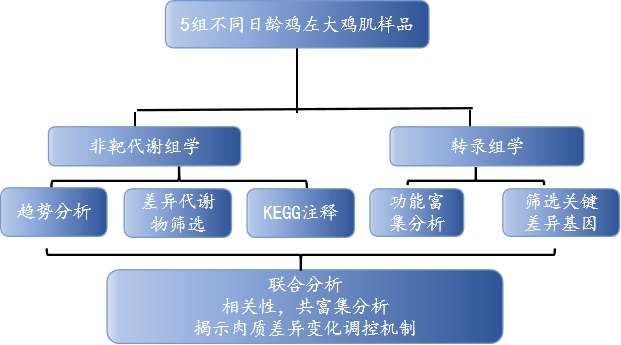 Integration analysis of metabolome and transcriptome profiles revealed the?age-dependent dynamic change in chicken meat.Food Research International (IF=6.475) 2022年6月代謝組和轉(zhuǎn)錄組的整合分析揭示不同生長發(fā)育時期雞的肉質(zhì)依賴性動態(tài)變化研究方案