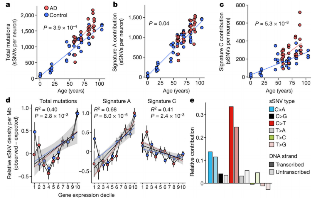 兩種不同的單細(xì)胞全基因組測(cè)序技術(shù)揭示了AD患者大腦中的興奮性神經(jīng)元積累的基因組損傷——以及可能的永久性突變——超過(guò)了僅因衰老而發(fā)生的水平,未來(lái)探索更多的體細(xì)胞突變模式解釋這些氧化性病變?nèi)绾瓮ㄟ^(guò)與衰老過(guò)程中發(fā)生的突變相互作用來(lái)?yè)p害基因組功能。