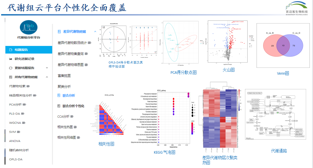 百邁客云平臺依托于多年項(xiàng)目分析經(jīng)驗(yàn),優(yōu)化云服務(wù)體系,功能全面升級,搭建了覆蓋數(shù)據(jù)處理、圖片美化、結(jié)果解讀、應(yīng)用介紹的個性化分析平臺,不需要和公司反反復(fù)復(fù)的確認(rèn),也不需要幾周的長時間等待,通過網(wǎng)頁就可以自主完成轉(zhuǎn)錄組代謝組聯(lián)合分析數(shù)據(jù)的挖掘,把時間握在自己手中。個性化分析功能+圖片交互,所有需求一網(wǎng)打盡!5分鐘急速周期,分析結(jié)果觸手可得!更有多種聯(lián)合分析等你來拿,轉(zhuǎn)錄,蛋白,代謝,微生物任意搭配,兩兩,三三多種組合任你選!幾步操作輕松搞定,無限次免費(fèi)分析!