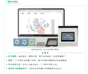 最后,制備合格的單細胞懸浮液/原生質(zhì)體/細胞核樣本,可以直接通過百創(chuàng)DG1000單細胞微液滴系統(tǒng),實現(xiàn)高通量的單細胞精準捕獲。百創(chuàng)DG1000是基于微流控、油滴包裹和Barcode標記等技術(shù)來實現(xiàn)高通量的細胞捕獲。除了儀器以外,百創(chuàng)DG1000還有配套的2×4的獨立芯片及配套試劑盒。