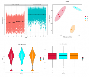 2、主坐標(biāo)分析可用研究差異分組之間和組內(nèi)樣本之間的變異度大小。PCoA圖交互式可實(shí)現(xiàn)數(shù)據(jù)標(biāo)簽的顯示,更改散點(diǎn)形狀和大小,添加置信橢圓和填充顏色等自定義功能;