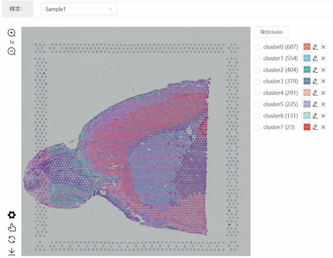 空間轉(zhuǎn)錄組的客戶,可根據(jù)組織聚類圖,結(jié)合影像學(xué)和研究目的,自主選擇感興趣區(qū)域(ROI,region of interesting),查看區(qū)域之間的基因表達情況,從而獲得更典型的對比結(jié)果。