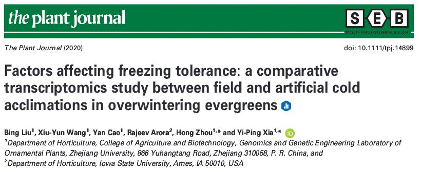 中文題目:影響耐凍性的因素:越冬常綠植物田間和人工低溫馴化之間的轉(zhuǎn)錄組學(xué)比較研究