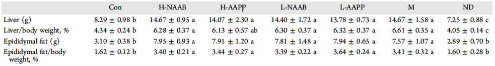 | L-NAAB | 喂PURINA#5008飼料,灌胃低劑量的NAAB?(25?mg/kg體重/天) | 8 |