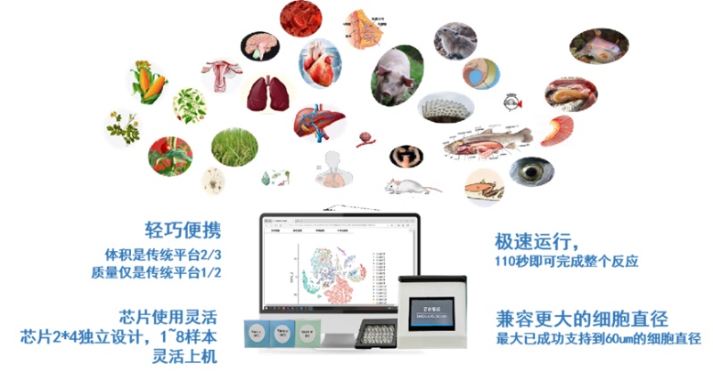 目前百創(chuàng)智造自主研發(fā)的單細(xì)胞微液滴系統(tǒng)-BMKMANU DG1000,是基于微流控、油滴包裹和Barcode標(biāo)記等技術(shù)來實現(xiàn)高通量的細(xì)胞捕獲,除了110s快速形成油包水(GEMs)結(jié)構(gòu)外,還有配套的2×4的獨立芯片及配套試劑盒,能兼容60μm的細(xì)胞直徑。目前BMKMANU DG1000已經(jīng)在上百例動植物樣本中得到實測效果驗證。
