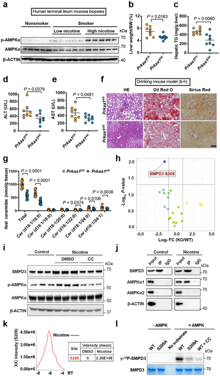 圖2-尼古丁誘導(dǎo)的NAFLD進展中腸AMPKa-SMPD3軸的激活
