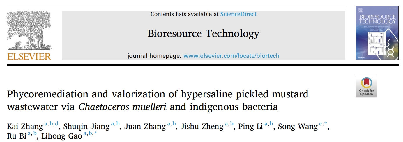英文標題:?Phycoremediation and valorization of hypersaline pickled mustard wastewater via?Chaetoceros muelleri?and indigenous bacteria