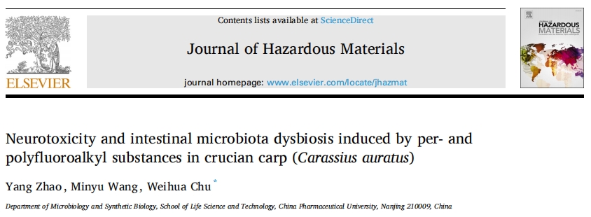 8月22日,中國藥科大學(xué)儲衛(wèi)華團(tuán)隊(duì)以淡水水生動(dòng)物鯽魚為模型對全氟和多氟烷基物質(zhì)(PFAS)的神經(jīng)毒性和菌群紊亂開展了深入研究,研究成果以題為“Neurotoxicity and intestinal microbiota dysbiosis induced by per- and polyfluoroalkyl substances in crucian carp (Carassius auratus)”發(fā)表在Journal of Hazardous Materials上。