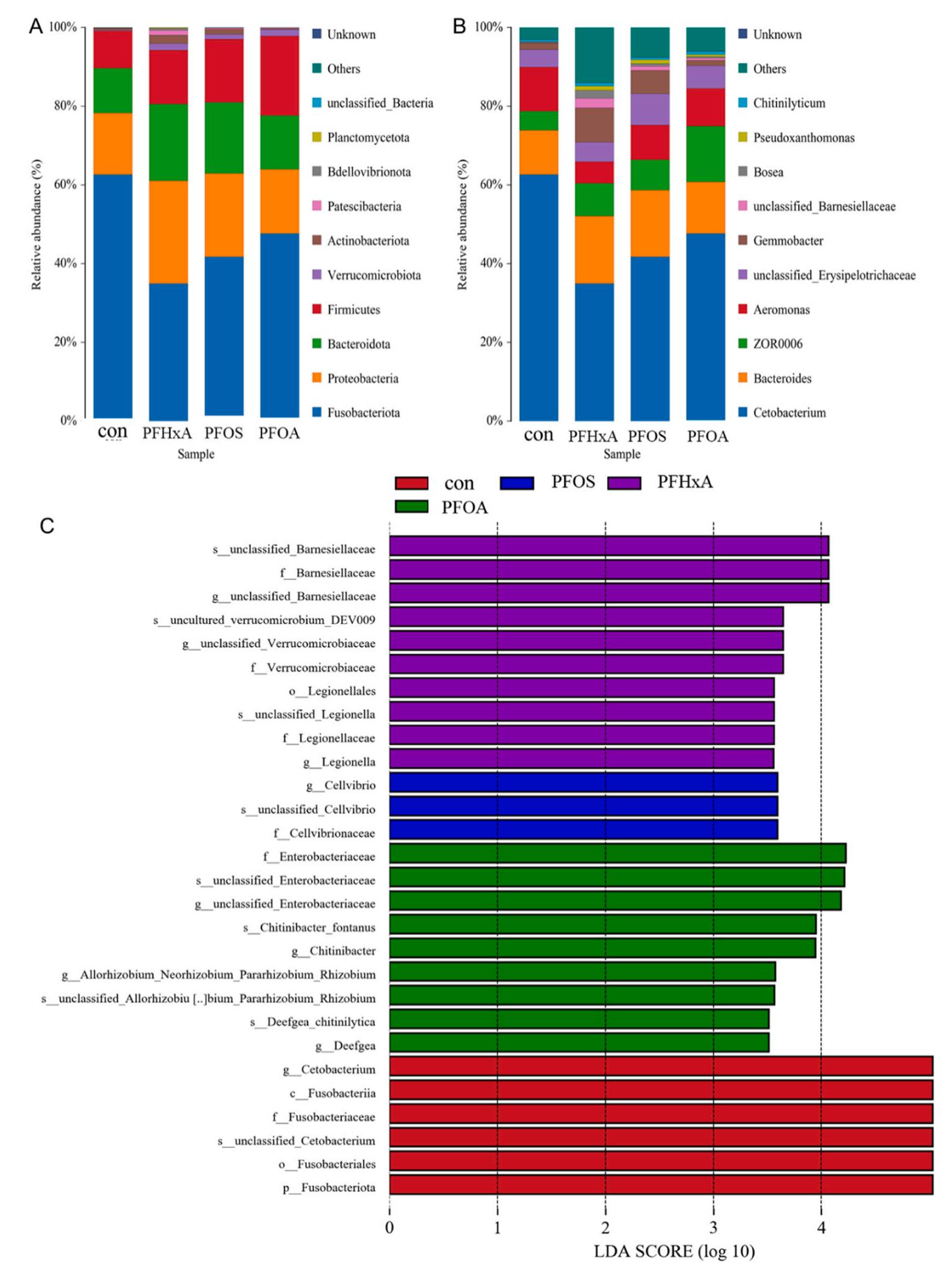 圖7-PFAS暴露對鯽魚腸道菌群組成的影響