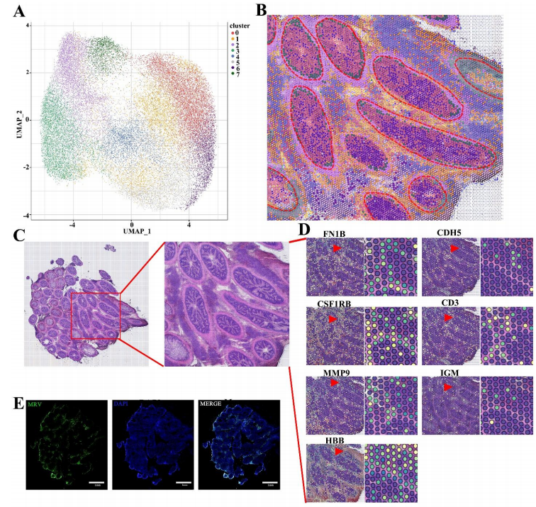 空間轉(zhuǎn)錄組:感染蛙虹彩病毒(MRV)的鱖魚的幽門盲囊組織