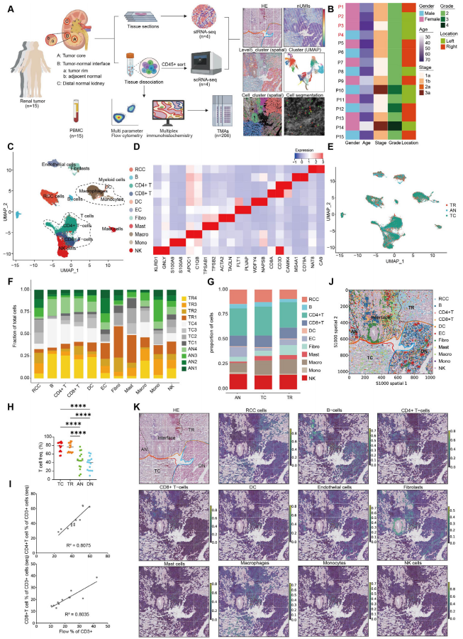 單細(xì)胞&空間轉(zhuǎn)錄組(細(xì)胞分割):腎透明細(xì)胞癌患者手術(shù)切除腎腫瘤組織(n=4,P1-P4)