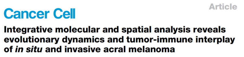 中文題目:整合分子和空間分析揭示原位和侵襲性肢端黑色素瘤的進(jìn)化動態(tài)和腫瘤免疫相互作用