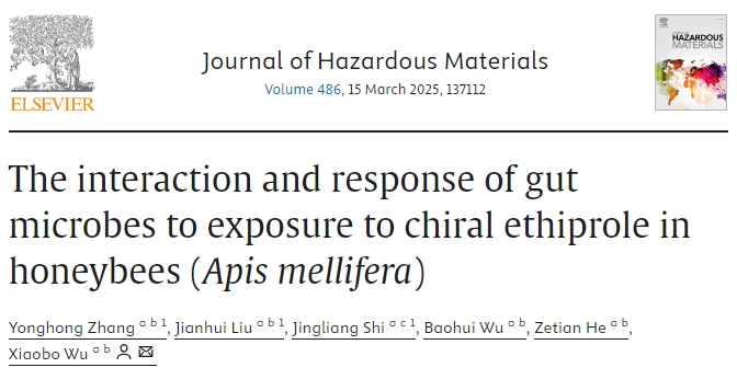 中文標(biāo)題:《蜜蜂(Apis mellifera)腸道微生物對手性乙蟲腈暴露的相互作用與響應(yīng)》