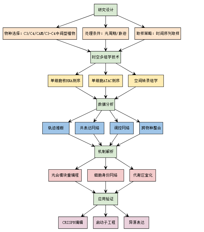 根據(jù)上述文獻(xiàn),可以總結(jié)出應(yīng)用時空組學(xué)解析植物光合作用機(jī)制常用思路的技術(shù)路線圖。
